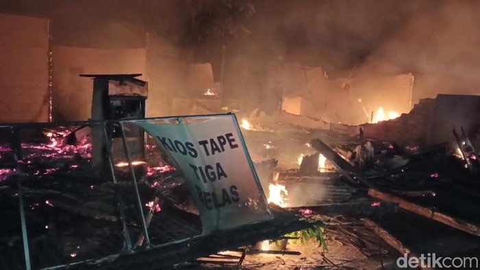 Api dengan cepat membesar lantaran bangunan kios terbuat dari kayu dan bambu, serta posisinya yang saling berdekatan. Berbagai barang dagangan berupa makanan oleh-oleh, kerajinan, hingga mainan anak-anak pun ludes tak tersisa.