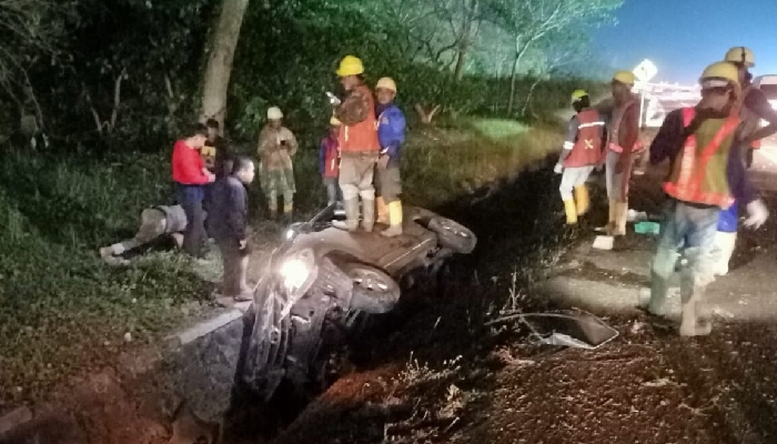Anang mengatakan minibus berpenumpang lima orang itu dikemudikan oleh Dedi Arya warga Kora Depok, tengah melakukan perjalanan dari arah Cirebon menuju arah Jakarta. Mobil alami pecah ban kemudian kendaraan oleng dan masuk ke dalam parit di pinggir jalan itu, posisi terakhir kendaraan roda kiri diatas menghadap ke timur.