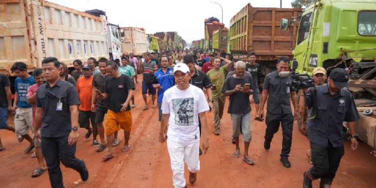 “Saya minta semua bisa operasi lagi, yang berizin dan tidak berizin tetap beroperasi. Yang belum ada izin tetap jalan, dan minta pendampingan selama proses,” kata perwakilan supir truk, Hendra.