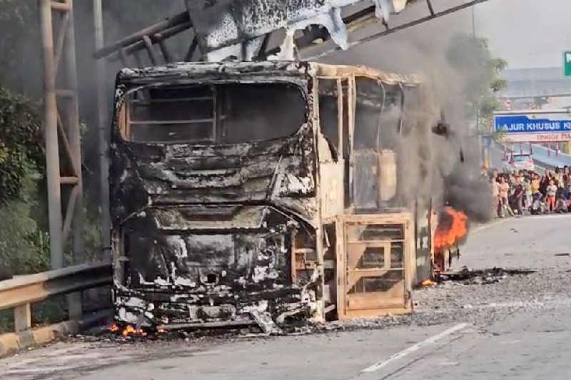 Bus Damri Jurusan Purwakarta Terbakar di Tol JORR, 15 Penumpang Selamat