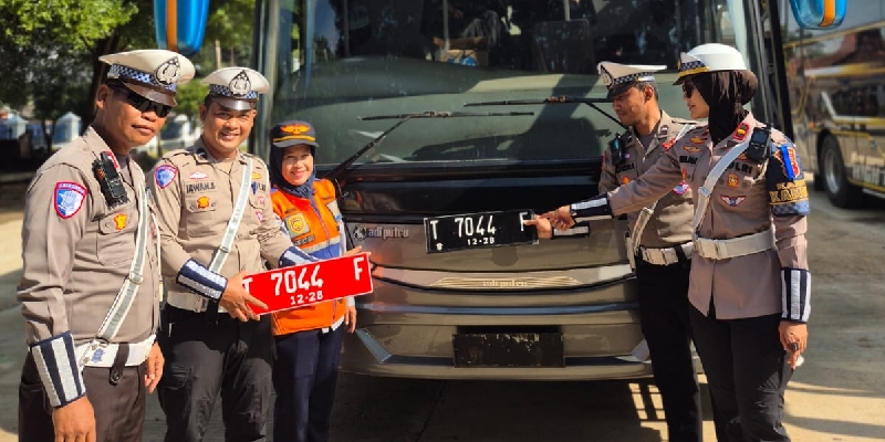 SUBANG, TINTAHIJAU.COM – Polres Subang melakukan penindakan terhadap bus berplat merah milik Pemkab Karawang yang mengangkut wisatawan. Bus tersebut ketahuan mengganti warna plat merah menjadi plat hitam.