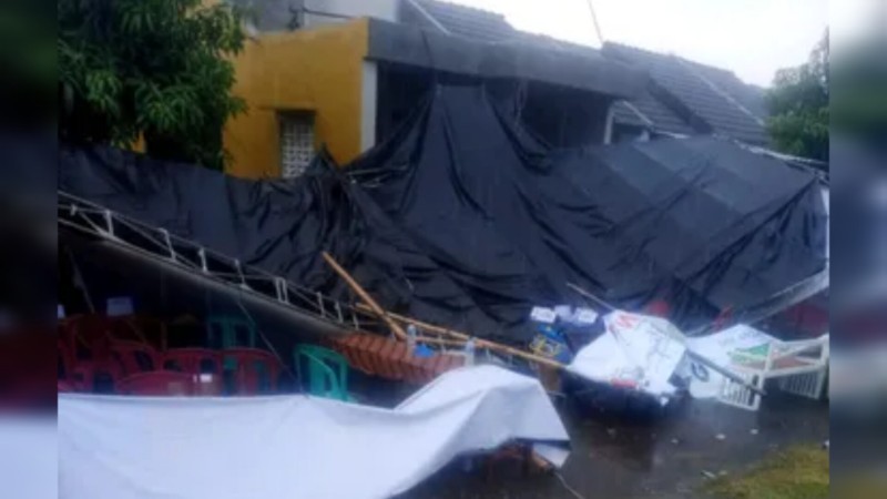SUBANG, TINTAHIJAUCOM- Hujan yang melanda wilayah Subang Kota mengakibatkan tenda TPS di Perumahan Permata Hijau Cobogo Subang ambruk pada Rabu, 27 November 2024.