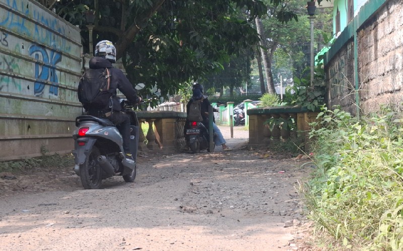 Namun kini, kondisi jalan di sekitar jembatan rusak parah, berlubang, dan sering tergenang air saat hujan. Ditambah dengan tumbuhan liar dan semak belukar di sisi jalan, area ini terlihat kumuh dan membahayakan pengguna jalan.