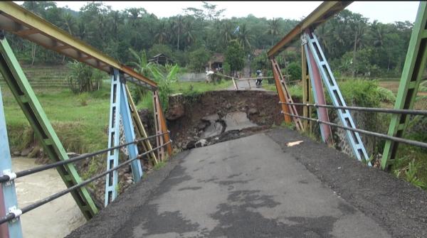 Akibatnya sebuah jembatan di Kampung Cipeuris, Desa Sukahurip, Kecamatan Cijambe, Kabupaten Subang ambles sedalam 2 meter.