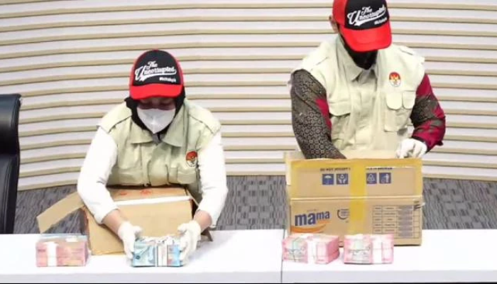 Dalam konferensi pers, KPK turut memperlihatkan uang sitaan tersebut kepada publik. Uang pecahan Rp50.000 dan Rp100.000 itu ditunjukkan dalam dua kardus yang diduga digunakan untuk mengemas dan menyerahkan uang dari pihak pemberi kepada penerima.