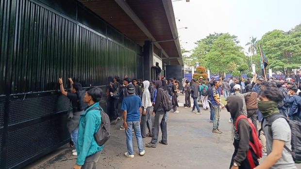 “Kalau di situ ditutup kita menuju ke Gerbang Pancasila. Kalau masih ditutup kita akan kepung gedung ini,” seru salah seorang orator melalui pengeras suara.