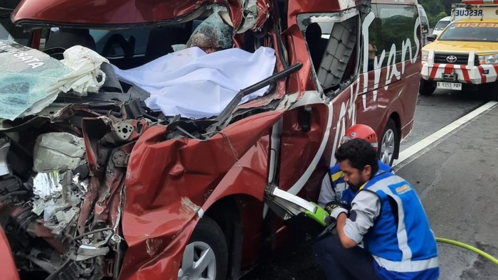 Benturan keras pun tak terhindarkan. Bagian depan mobil travel ringsek parah setelah menghantam sisi belakang truk. Beberapa penumpang panik dan berusaha keluar dari kendaraan yang rusak berat, sementara petugas kepolisian bersama tim pengelola tol segera melakukan evakuasi.