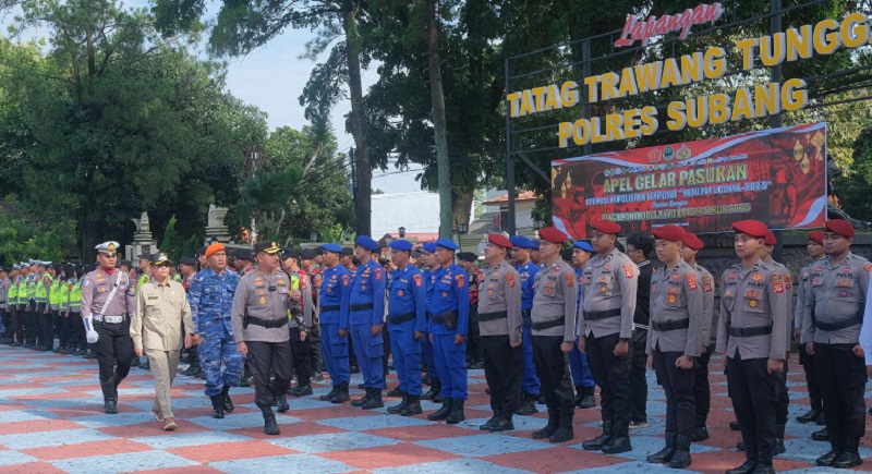 Operasi Ketupat Lodaya ini diawali dengan Apel Gelar Pasukan di Lapangan Apel Tatag Trawang Tungga Mako Polres Subang, pada Kamis (20/3/2025).
