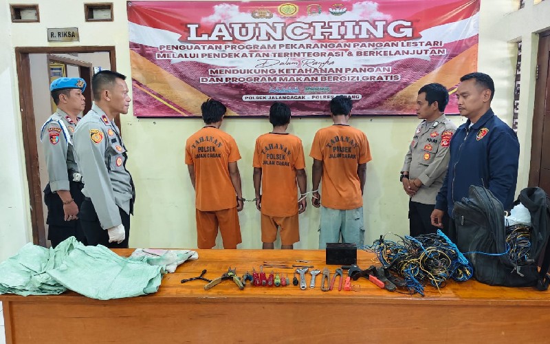 SUBANG, TINTAHIJAU.COM – Unit Reskrim Polsek Jalancagak berhasil membekuk tiga pelaku pencurian kabel listrik tembaga di Komplek Ciater Grand Resort, Desa Cisaat, Kecamatan Ciater, Kabupaten Subang.