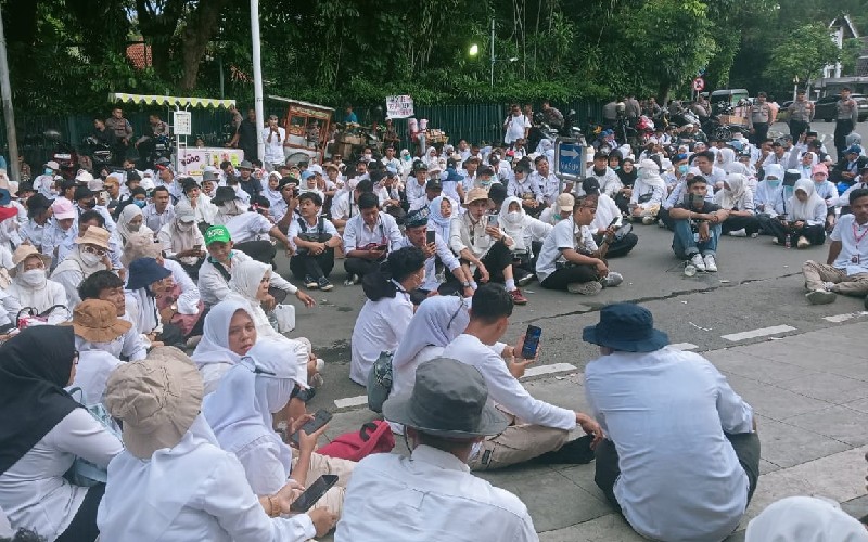 Massa menuntut pemerintah segera menerbitkan regulasi yang mengatur nasib honorer non database, termasuk skema pengangkatan melalui PPPK paruh waktu.