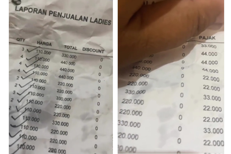 Wanita tersebut awalnya tidak menyangka bahwa gorengan yang ia beli dibungkus dengan kertas yang berisi informasi yang cukup mengejutkan. “Kalian tahu apa yang aku temukan di bungkus gorengan? ‘Taraa (laporan penjualan ladies)’, mengejutkan,” ungkap wanita itu dalam unggahannya.