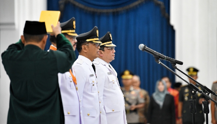 BANDUNG, TINTAHIJAU.com – Penjabat Gubernur Jawa Barat Bey Machmudin melantik Pj Wali Kota Bogor, Pj Bupati Ciamis, dan Pj Bupati Sumedang di Aula Barat Gedung Sate, Kota Bandung, Sabtu (20/4/2024).