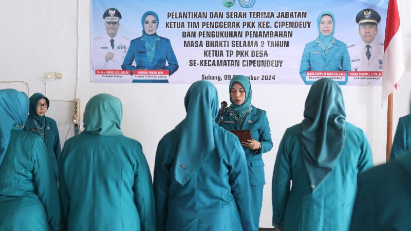 Untuk melaksanakan program dan kegiatan PKK, diperlukan tim kerja dengan kader SDM yang solid dan berkualitas. Pelantikan ini menindaklanjuti Surat Ketua TP PKK Kabupaten Subang Nomor: 126/Skr/PKK.Kab/X/2024 tentang Pelantikan Ketua TP PKK Kecamatan Cipeundeuy.