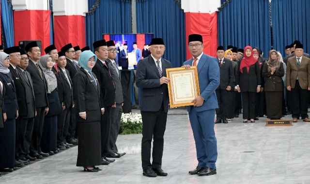 Prosesi pemberhentian sekaligus pengangkatan dipimpin langsung Gubernur Jabar Ridwan Kamil berdasarkan Keputusan Presiden RI Nomor 13/M Tahun 2023 tentang Pemberhentian dari Jabatan Pimpinan Tinggi Madya serta Pengangkatan dalam Jabatan Fungsional Ahli Utama.