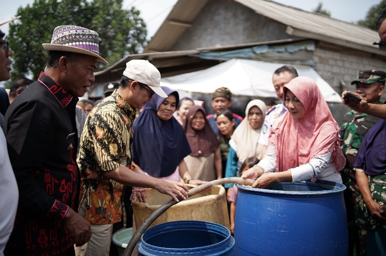 Sementara itu Bupati Subang H. Ruhimat bersama Wakil Bupati Subang H. Agus Masykur Rosyadi membawa dua tangki air bersih Desa Cigintung Kecamatan Ciater.