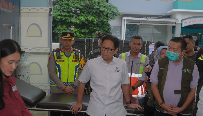 Menkes RI saat monitoring Posko Kesehatan didampingi Kepala Dinas Kesehatan (Kadinkes) Kabupaten Subang dr Maxi, S.H, M.HKes dan sejumlah tenaga kesehatan.