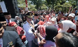 Upacara HUT ke – 78 RI tingkat Jabar itu juga dijadikan momentum berpamitan ke masyarakat. Kang Emil yang berdiri di atas mimbar didampingi Wagub Uu Ruzhanul Ulum menyampaikan maafnya kepada masyarakat bila dalam kepemimpinannya masih ada yang belum sesuai harapan.