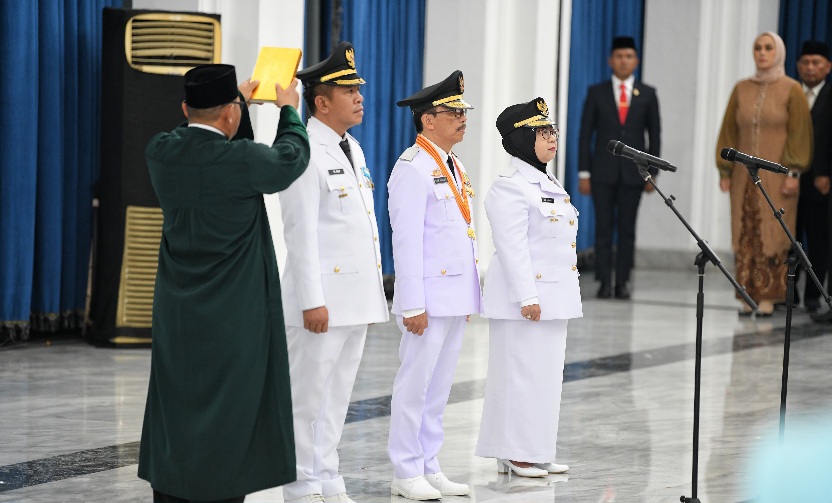 Setelah melantik dan mengambil sumpah jabatan, Bey Machmudin kemudian menitipkan sejumlah pesan kepada tiga kepala daerah yang dilantik. Mereka diminta menjalankan amanah dengan penuh integritas, transaparan, dan berkelanjutan.