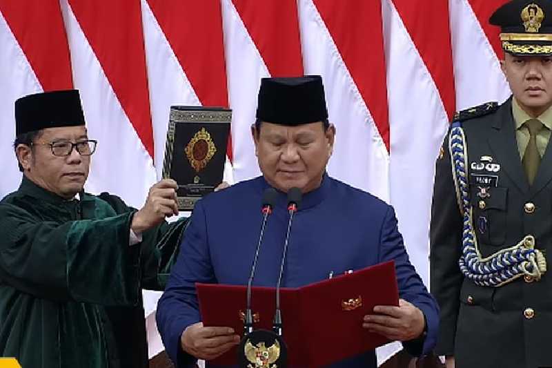 Foto: Prabowo dan Gibran mengucapkan sumpah sebagai Presiden dan Wakil Presiden Republik Indonesia. (Dok. YouTube MPR)