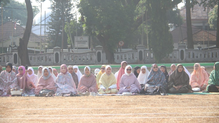 Ada Bupati Subang H. Ruhimat didampingi Wakil Bupati Subang H. Agus Masykur Rosyadi diantara jamaah Shalat Istisqa’.