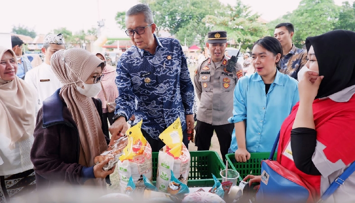 CIREBON, TINTAHIJAU.com – Pj Wali Kota Cirebon Drs H Agus Mulyadi MSi meninjau kegiatan Gerakan Pangan Murah (GPM) di Lapangan Kebon Pelok, Kamis (04/07/2024).