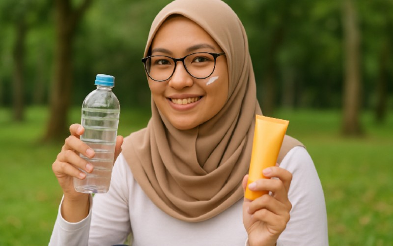 - Gunakan sunscreen – Paparan sinar matahari menjadi musuh utama kulit. Pilih tabir surya minimal SPF 30 untuk melindungi kulit dari penuaan dini.