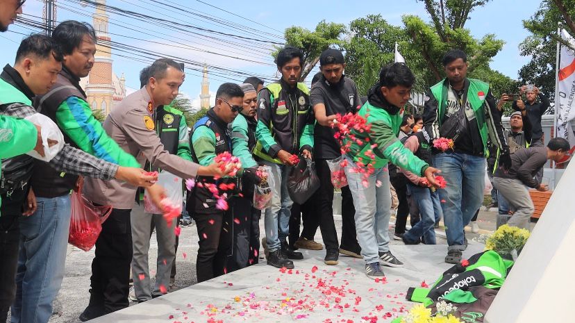 “Tabur bunga ini adalah simbol perjuangan Affan. Dia pejuang jalanan, pejuang keluarga, meski akhirnya gugur dengan cara tragis,” tutur salah seorang peserta aksi.