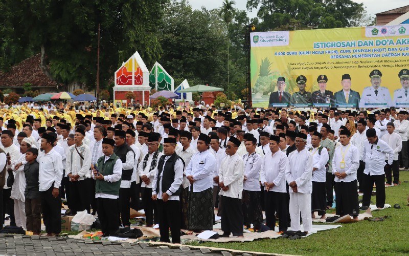 Ia menyebutkan, istighosah tersebut diikuti sekitar 8.000 guru ngaji se-Kabupaten Subang yang secara khusus mendoakan keselamatan daerah dan para pemimpinnya.