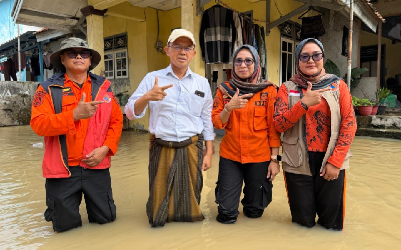 KH Maman didampingi Direktur Dukungan Sumber Daya Darurat (DSDD) BNPB Agus Riyanto beserta jajaran, serta tim BPBD Kabupaten Subang. Rombongan meninjau sejumlah titik genangan dan lokasi pengungsian warga.