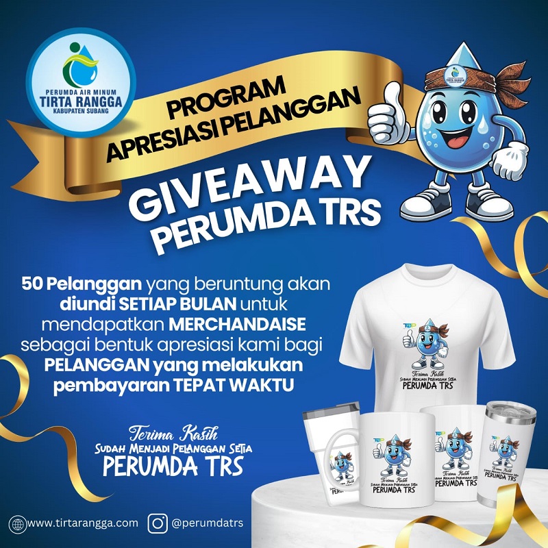 SUBANG, TINTAHIJAU.COM – Perumda Tirta Rangga Subang menyiapkan giveaway untuk puluhan pelanggan setianya. Giveaway ini sebagai apresiasi kepada pelanggan.