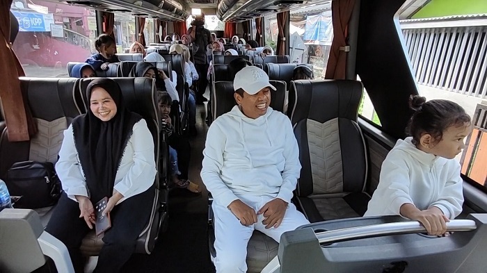 KDM yang duduk dalam satu bus bersama mereka pun tampak bahagia dan bercanda bersama. Tak ada sekat, mereka saling berbaur, mengobrol sepanjang perjalanan.