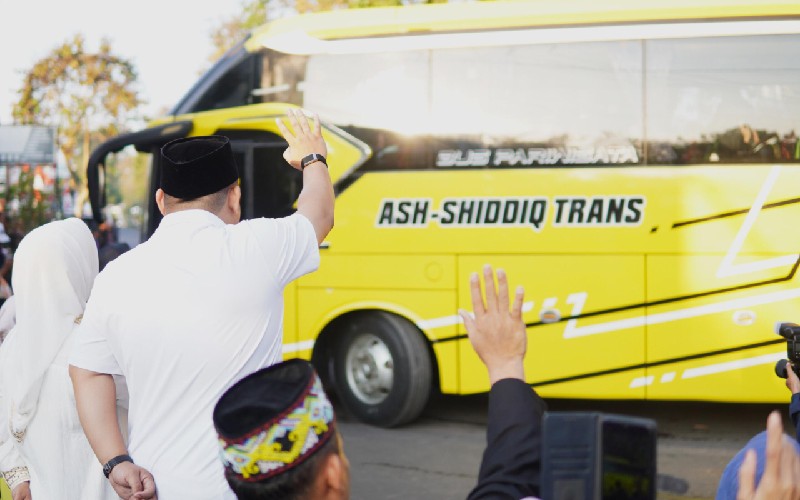 Usai acara seremoni, pelepasan dilakukan dengan pemberangkatan 9 bus yang mengangkut jamaah menuju bandara. Suasana haru bercampur bahagia tampak mewarnai momen keberangkatan, diiringi doa dan tangis keluarga yang mengantar.