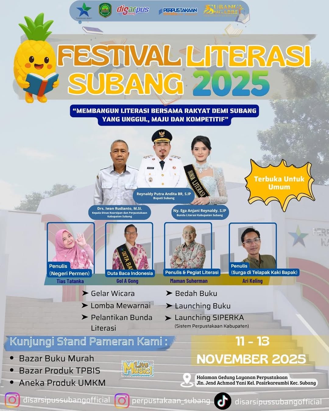 Festival Literasi Subang 2025 diharapkan menjadi momentum penting untuk menghidupkan semangat membaca di semua kalangan, dari pelajar hingga masyarakat umum.