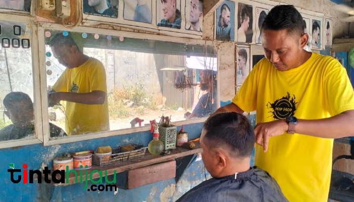 SUBANG, TINTAHIJAU.com – Selain pedagang pakaian dan sembako, bisnis barbershop yang panen menjelang lebaran.