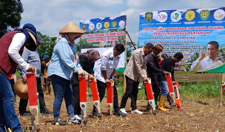 SUBANG, TINTAHIJAUcom – Kementerian Pertanian (Kementan) mengawal jalanya kegiatan gerakan pemuda tani Indonesia (Gempita) yang melakukan penanaman jagung di Desa Gembor, Kecamatan Pagaden, Kabupaten Subang, Provinsi Jawa Barat, Kamis (8/2/2024).
