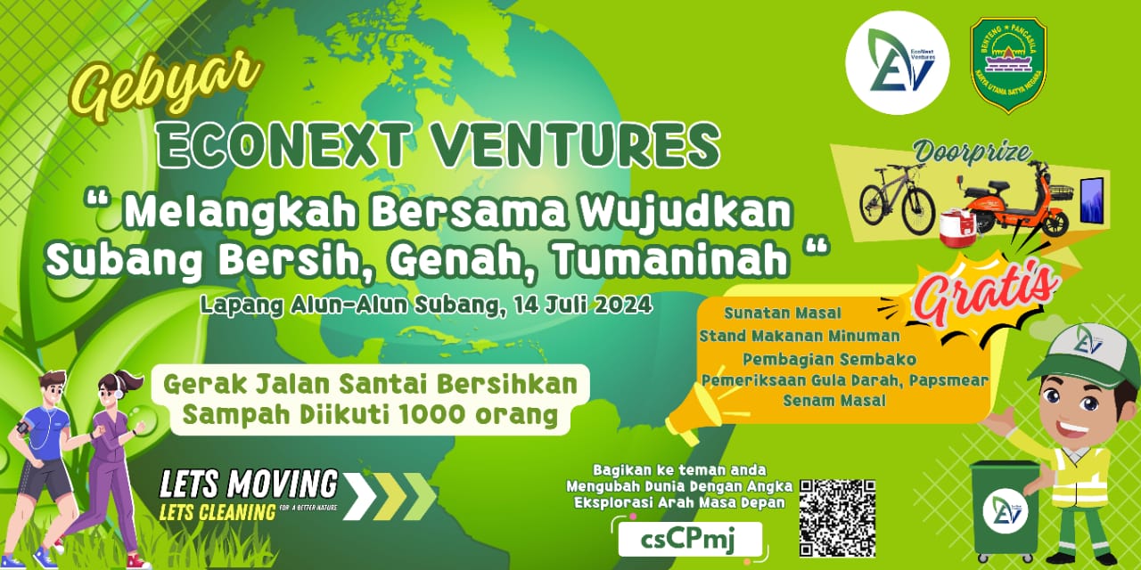 SUBANG, TINTAHIJAU.com – Econext Ventures akan menggelar aksi sosial dsngan jalan sehat sambil memungut sampah di Subang Kota pada Minggu (14/7/2024).
