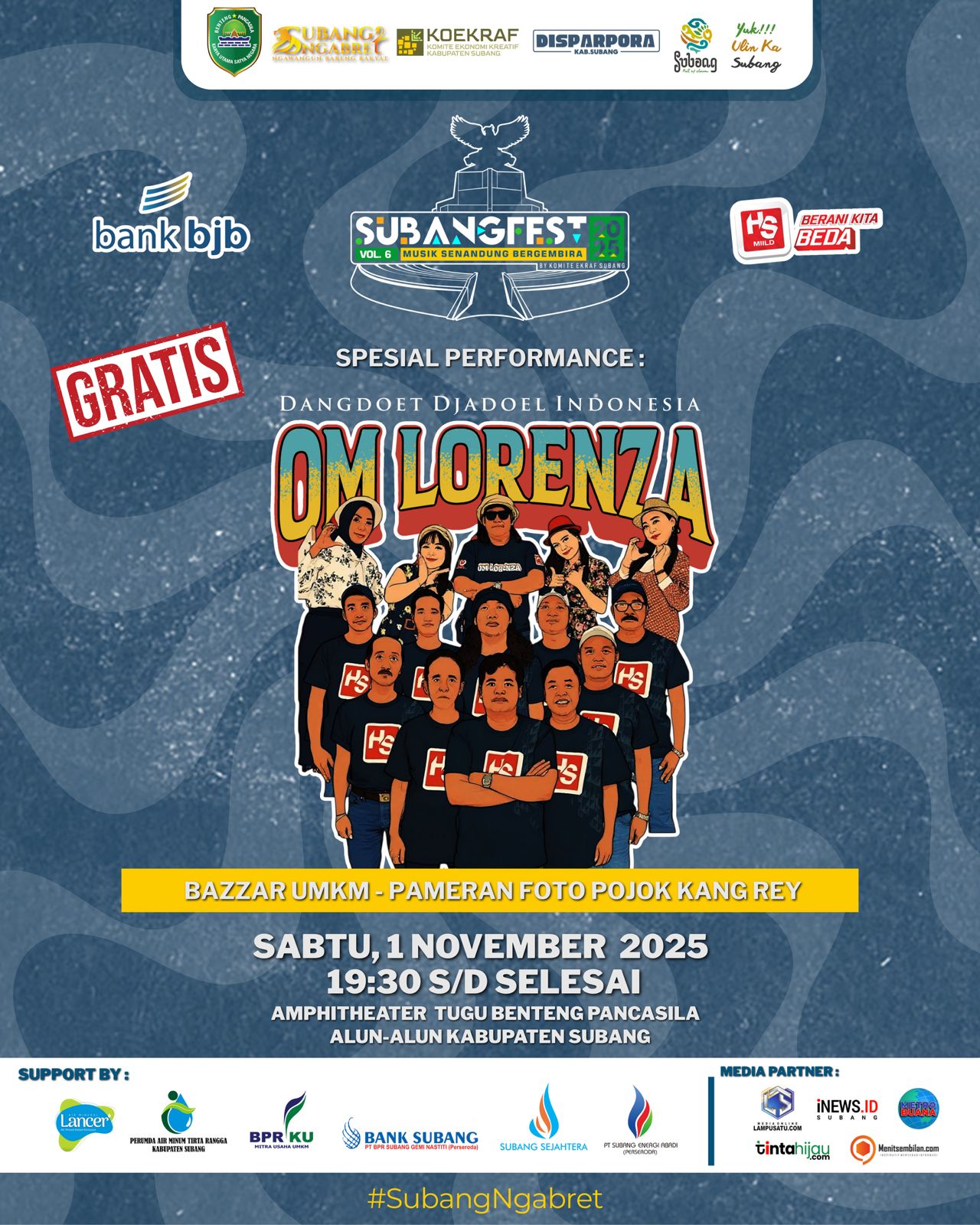 SUBANG, TINTAHIJAU.COM – Malam puncak Subang Fest Vol.6 dipastikan bakal pecah! Penampilan spesial dari OM Lorenza Music siap mengguncang panggung di Tugu Benteng Pancasila, Alun-Alun Subang, pada Sabtu (1/11/2025) malam.