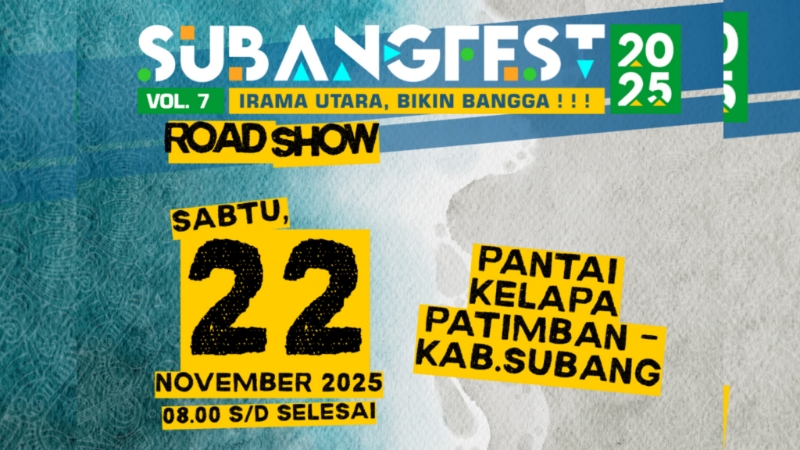 Mengusung tema “Irama Utara, Bikin Bangga!!!”, SubangFest edisi November ini akan berlangsung di Pantai Kelapa Patimban pada Sabtu, 22 November 2025, mulai pukul 08.00 WIB hingga selesai.
