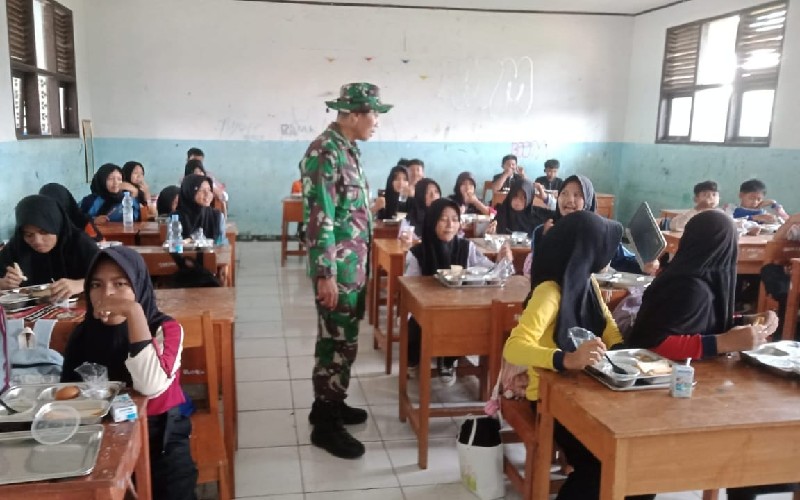 “Sedikitnya 464 siswa SMP Negeri 2 Pabuaran menerima makanan bergizi. Pemeriksaan ini untuk memastikan makanan yang dibagikan aman dikonsumsi,” kata Danramil Pabuaran, Letu Inf Odiyarto kepada TINTAHIJAU.COM.