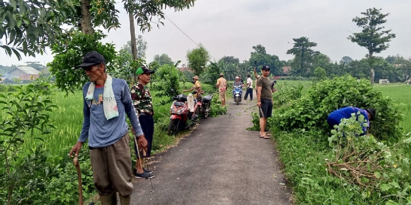 Untuk membersihkan sampah dan ilalang yang menutupi bahu jalan puluhan warga di bantu perangkat desa serta Babinsa AD disebar kesejumlah titik.