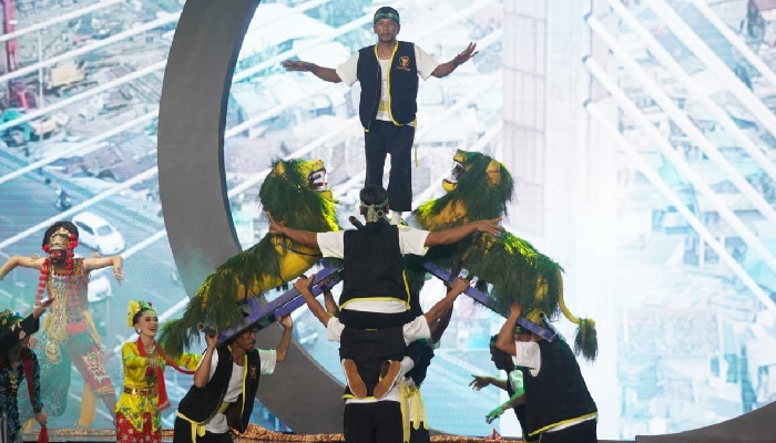 SUBANG, TINTAHIJAUcom – Seni tradisional khas Subang Sisingaan beraksi di Panggung Peluncuran Pemilihan Gubernur dan Wakil Gubernur Jawa Barat di Sasana Budaya Ganesha (Sabuga), Kota Bandung pada Senin (27/5/2024).