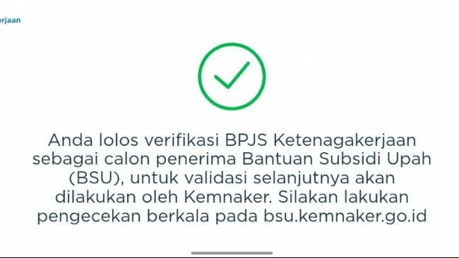 Untuk mengecek status sebagai penerima BSU 2025, masyarakat dapat mengunjungi situs resmi https://bsu.kemnaker.go.id dan memasukkan Nomor Induk Kependudukan (NIK) serta kode keamanan yang diminta. Jika lolos, akan muncul notifikasi bahwa NIK memenuhi kriteria sebagai calon penerima.
