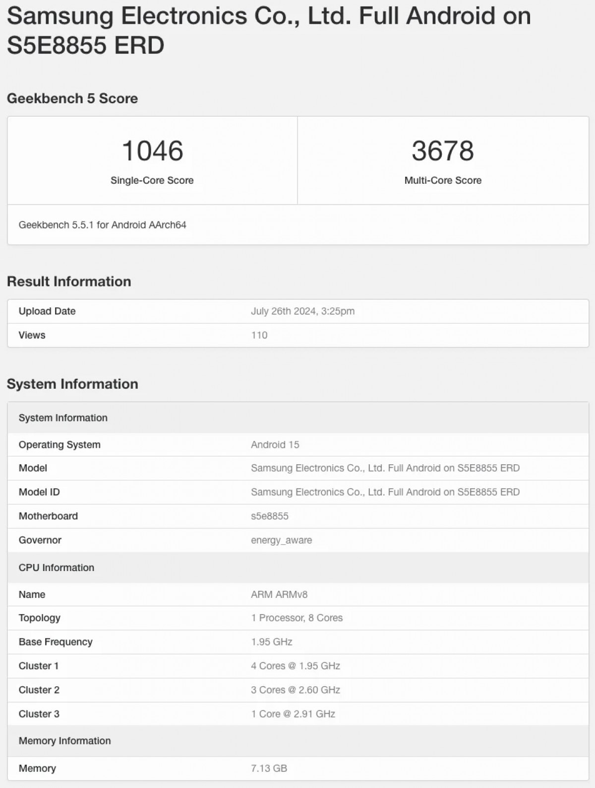 Berdasarkan uji benchmark Geekbench pada bulan Juli, Exynos 1580 menunjukkan performa yang sebanding dengan chipset flagship tahun 2021, seperti Snapdragon 888. Untuk sebuah SoC (System on Chip) kelas menengah, hal ini merupakan peningkatan yang mengesankan.