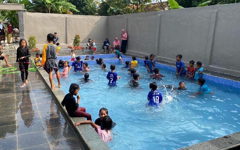 “Awalnya mau dibikin rumah pensiun, tapi karena pensiun masih lama, kami pikir kenapa nggak dimanfaatkan dulu buat kolam renang anak-anak. Biar anak-anak kampung juga bisa liburan tanpa harus jauh-jauh,” ujar Warlan kepada TINTAHIJAU.com.