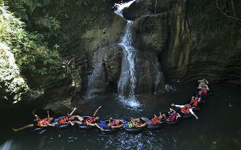 Santirah River Tubing, aktivitas arung jeram / tubing di Sungai Santirah yang jernih. Rute tubing ± 1,5 km, melewati jeram, air terjun kecil, dan beberapa gua alami. Pemula pun bisa ikut, dengan bimbingan pemandu.